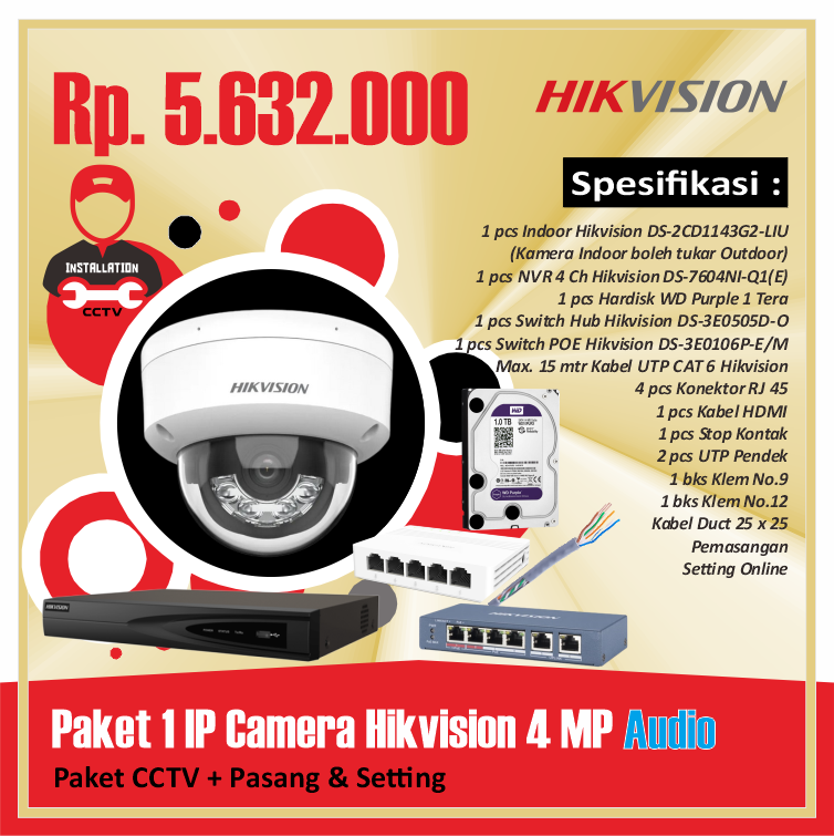 Paket 01 IP Camera Hikvision 4 MP AudioRp 5.632.000