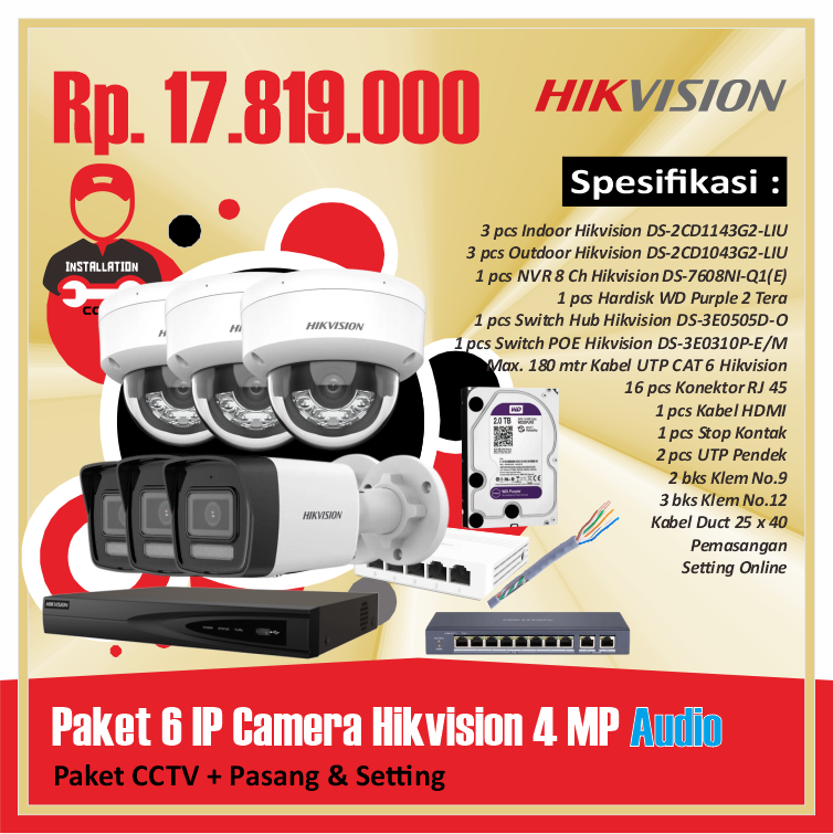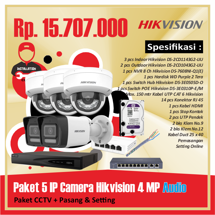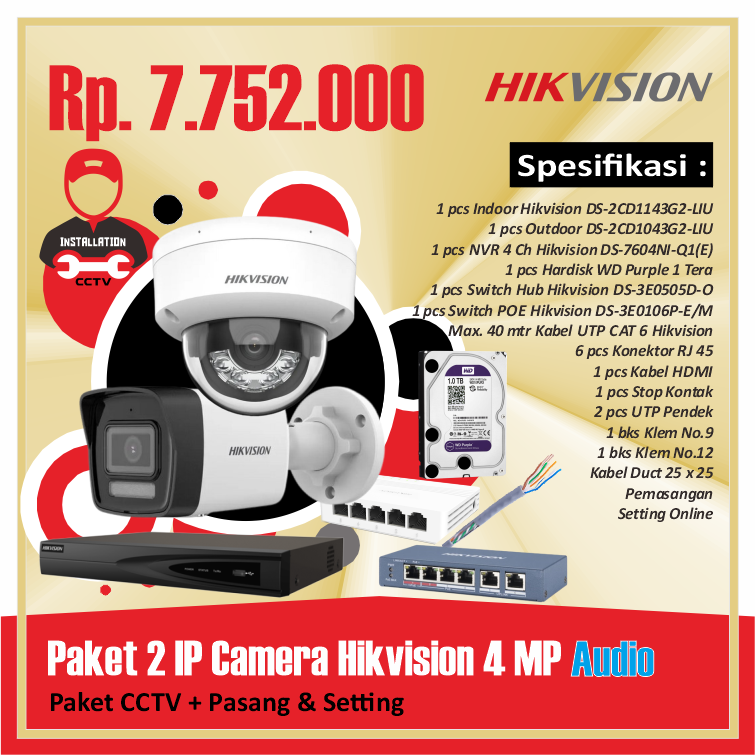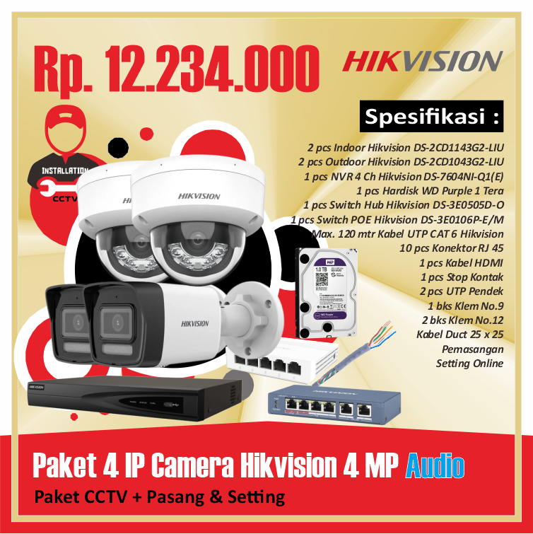Paket 04 IP Camera Hikvision 4 MP AudioRp 12.234.000