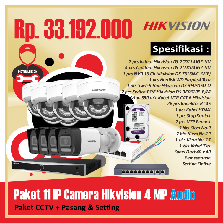 Paket 11 IP Camera Hikvision 4 MP AudioRp 33.192.000