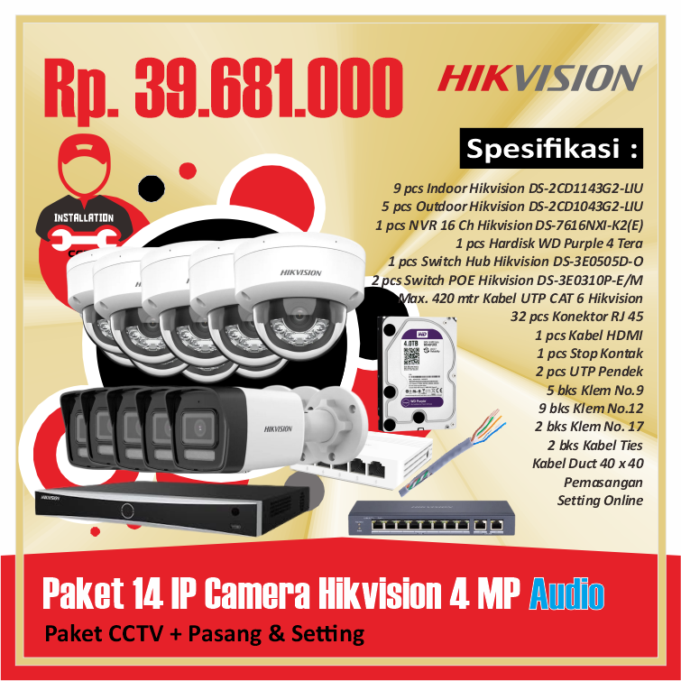Paket 14 IP Camera Hikvision 4 MP AudioRp 39.681.000