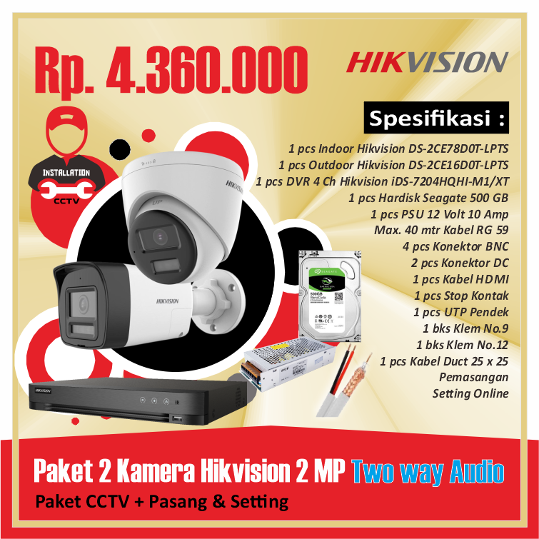 Paket 04 Kamera Hikvision 2 MP Two way AudioRp 6.409.000