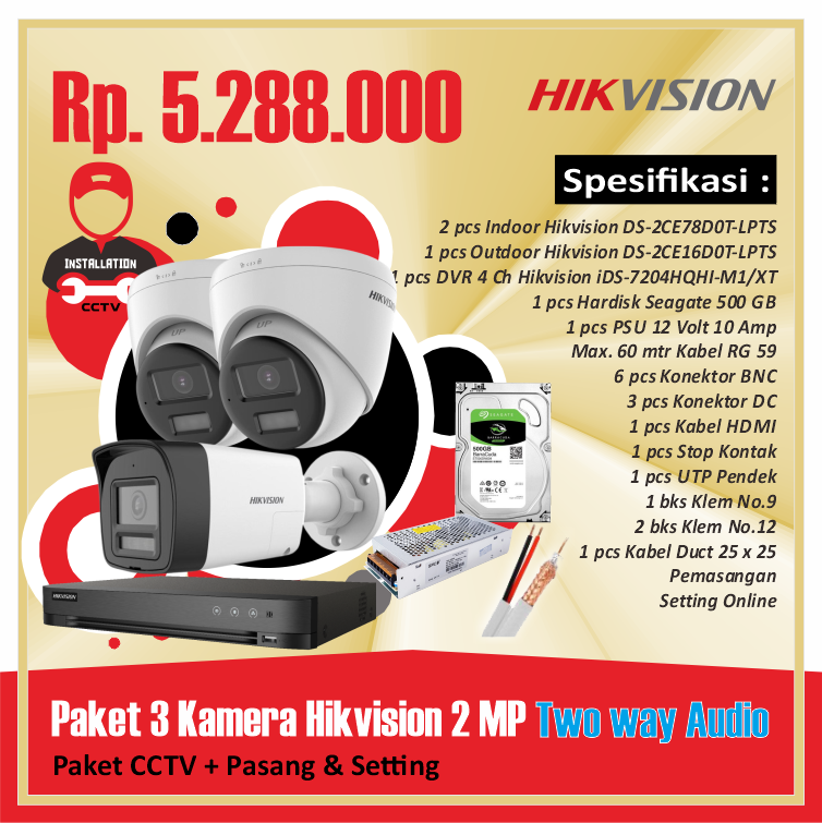 Paket 07 Kamera Hikvision 2 MP Two way AudioRp 11.115.000