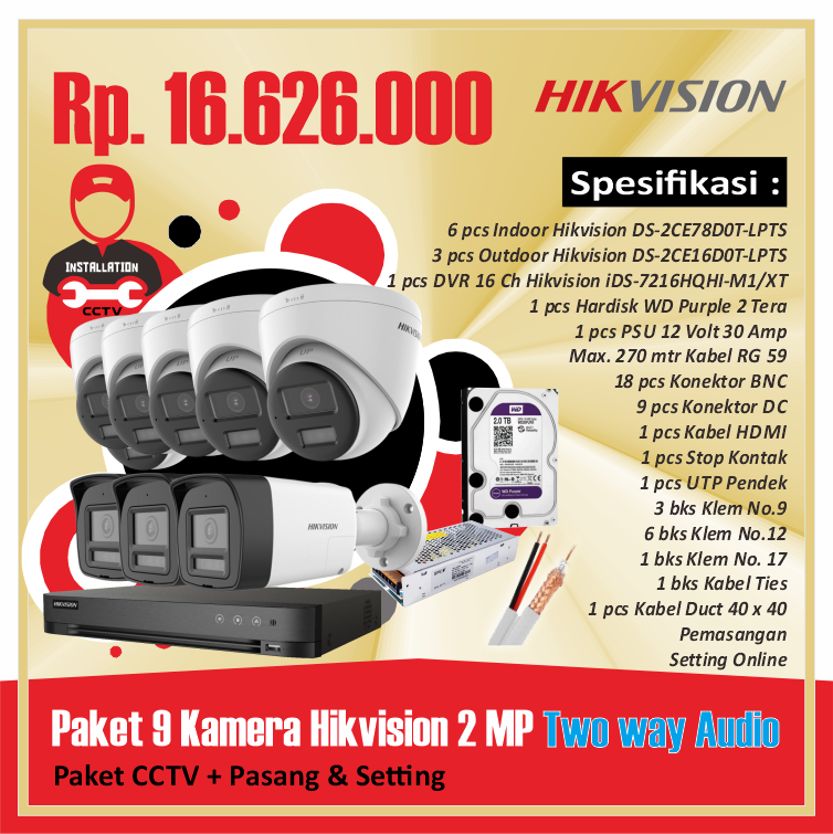 Paket 13 Kamera Hikvision 2 MP Two way AudioRp 20.569.000