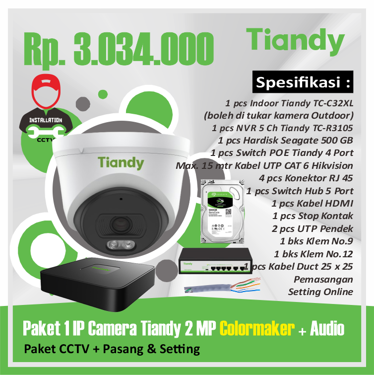 Paket 01 IP Camera Tiandy 2 MP Colormaker + AudioRp 3.034.000