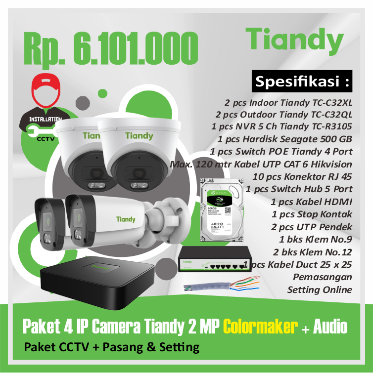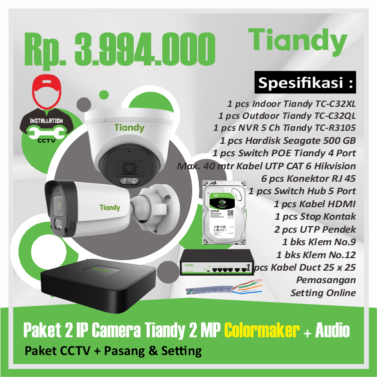 Paket 09 IP Camera Tiandy 2 MP Colormaker + AudioRp 14.754.000