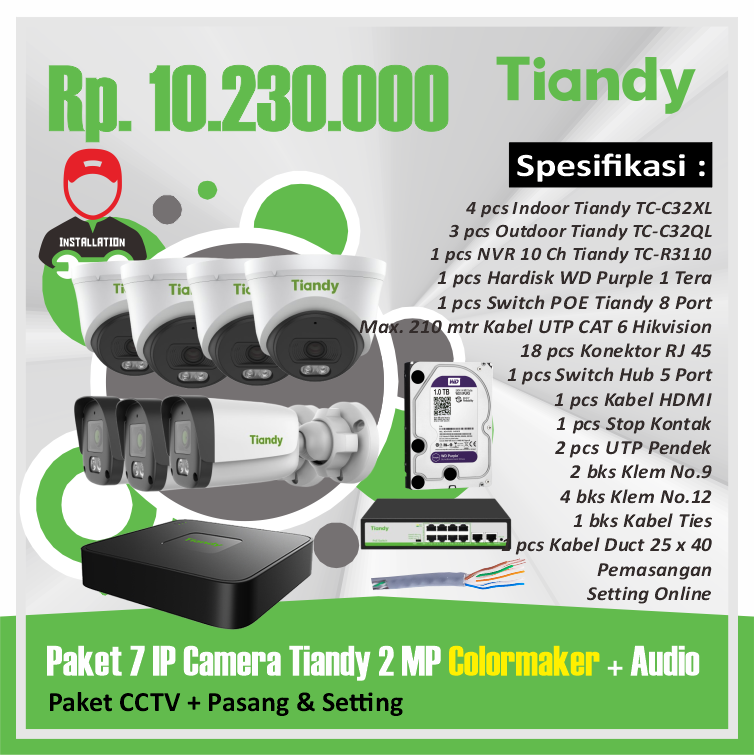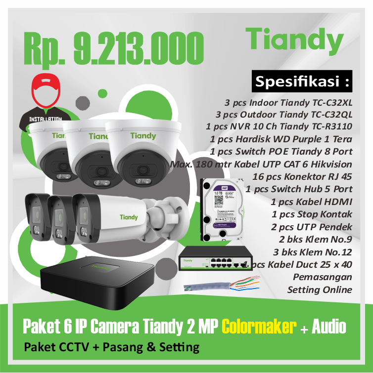 Paket 12 IP Camera Tiandy 2 MP Colormaker + AudioRp 17.748.000