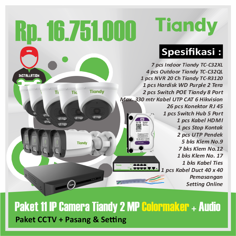 Paket 11 IP Camera Tiandy 2 MP Colormaker + AudioRp 16.751.000
