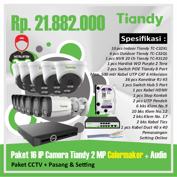 Paket 16 IP Camera Tiandy 2 MP Colormaker + AudioRp 21.882.000