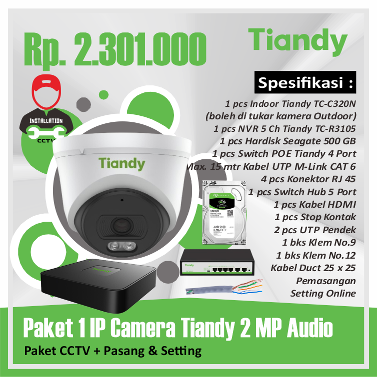 Paket 01 IP Camera Tiandy 2 MP AudioRp 2.301.000