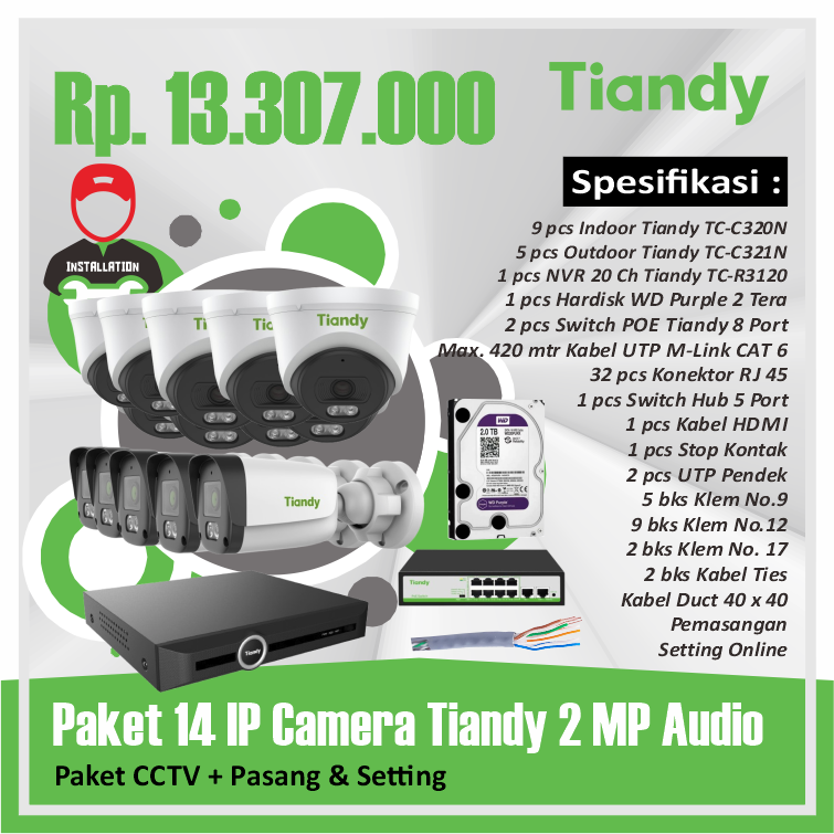 Paket 14 IP Camera Tiandy 2 MP AudioRp 13.307.000
