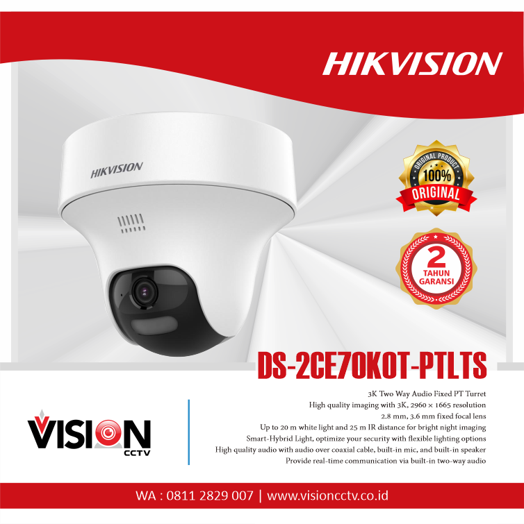 1 pcs Indoor Hikvision DS-2CE76K0T-LPFS