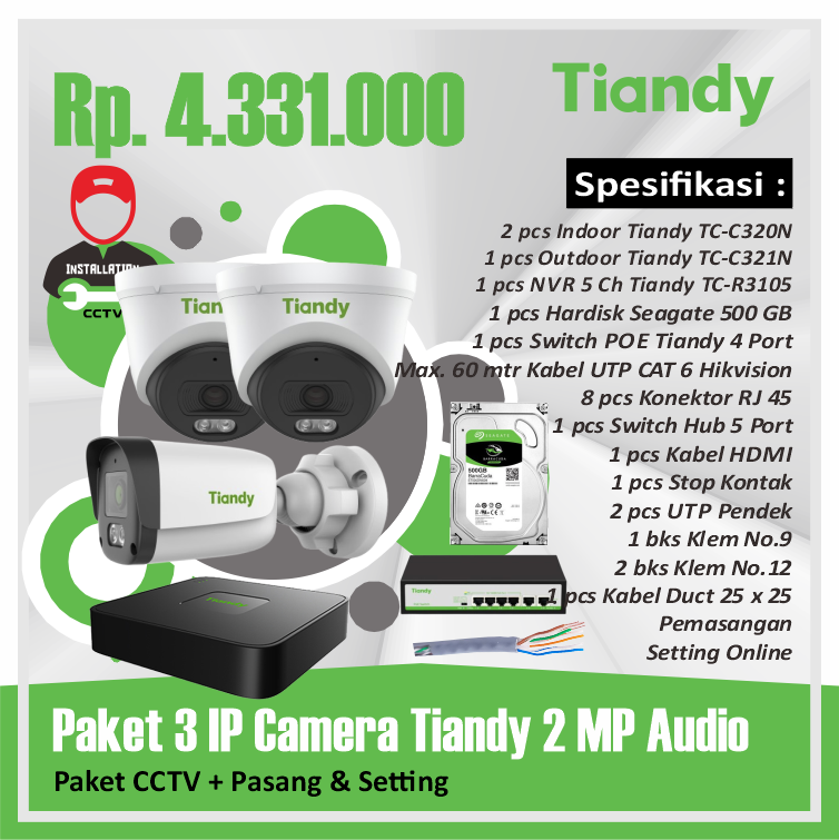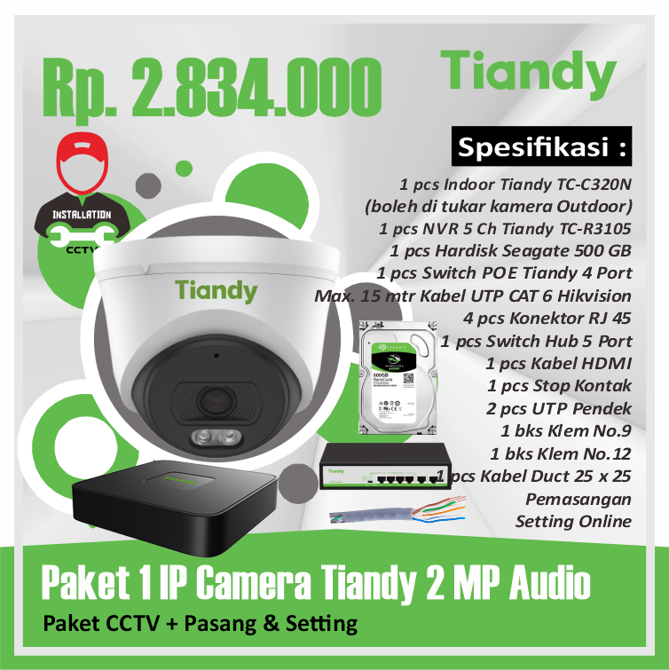 Paket 01 IP Camera Tiandy 2 MP AudioRp 2.834.000