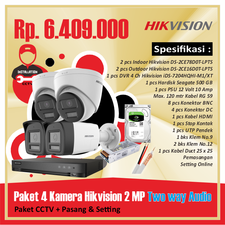 Paket 02 Kamera Hikvision 2 MP Two way AudioRp 4.360.000