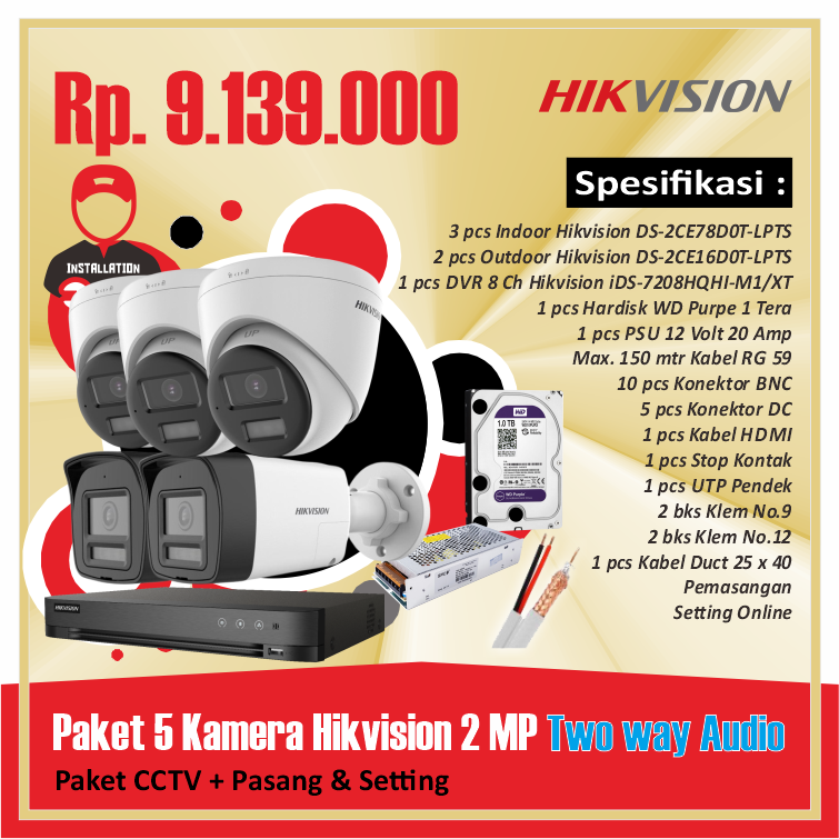 Paket 05 Kamera Hikvision 2 MP Two way AudioRp 9.139.000