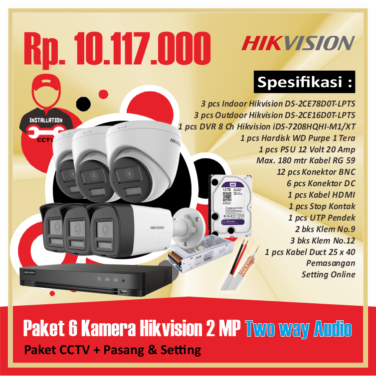 Paket 06 Kamera Hikvision 2 MP Two way AudioRp 10.117.000