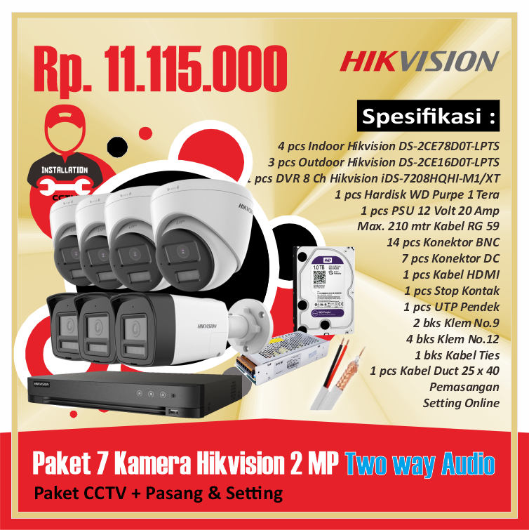 Paket 07 Kamera Hikvision 2 MP Two way AudioRp 11.115.000