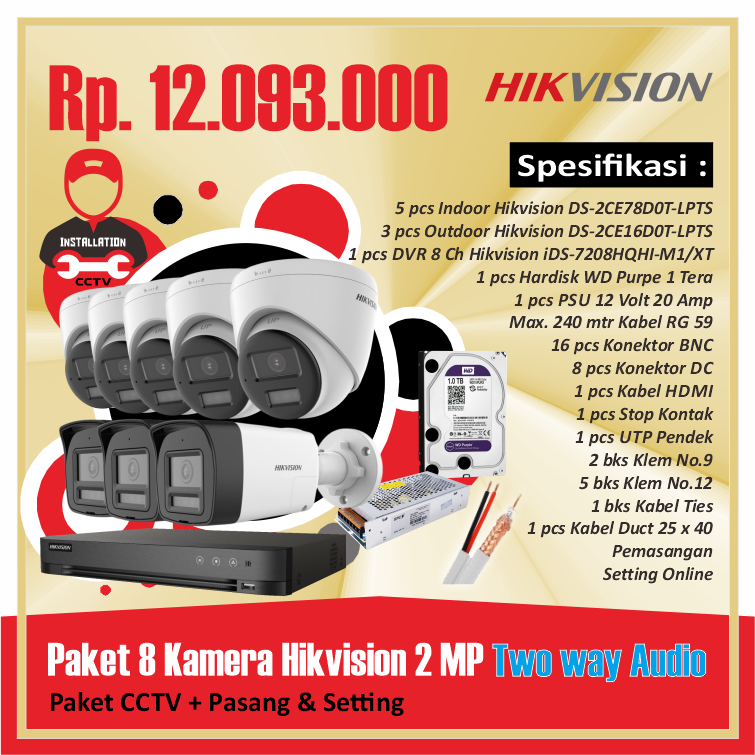 Paket 08 Kamera Hikvision 2 MP Two way AudioRp 12.093.000