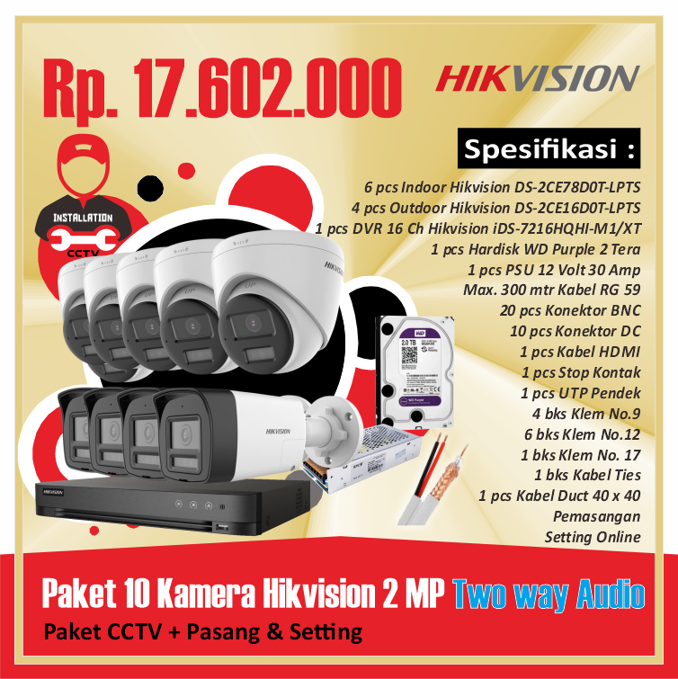 Paket 10 Kamera Hikvision 2 MP Two way AudioRp 17.602.000