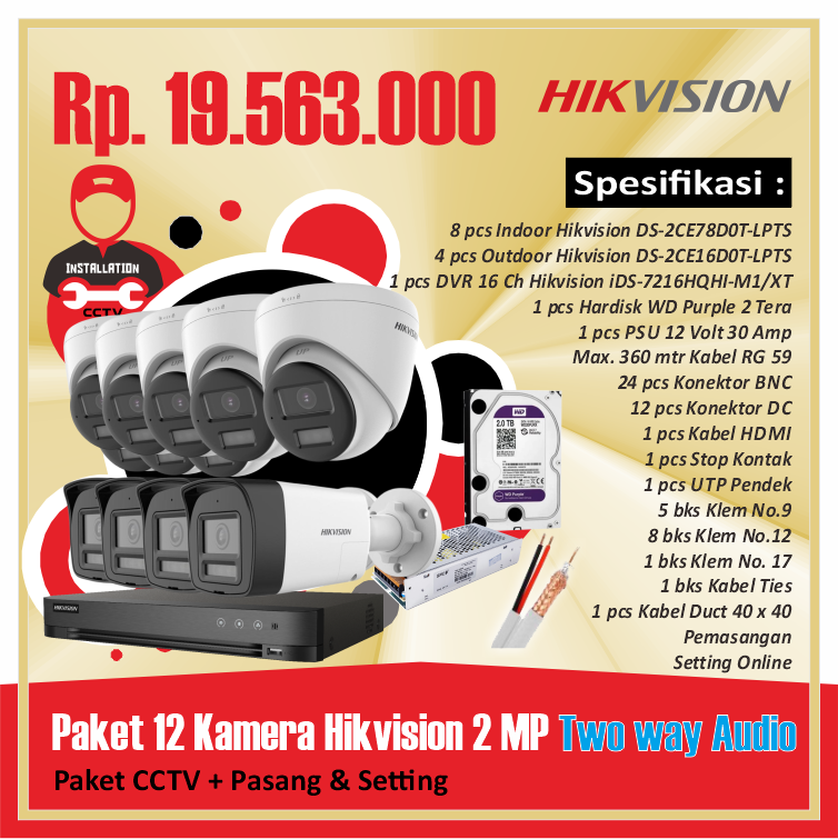 Paket 12 Kamera Hikvision 2 MP Two way AudioRp 19.563.000