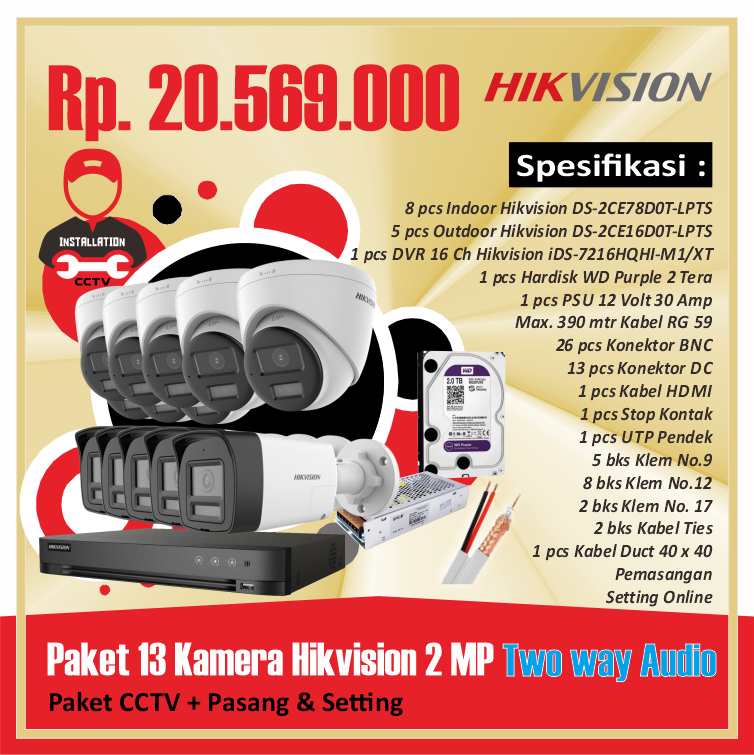 Paket 13 Kamera Hikvision 2 MP Two way AudioRp 20.569.000