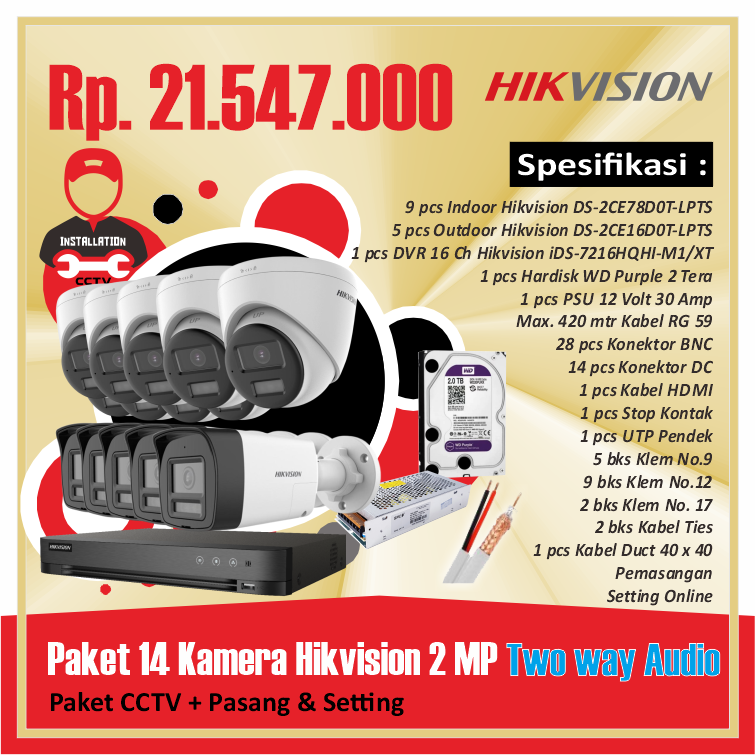Paket 14 Kamera Hikvision 2 MP Two way AudioRp 21.547.000