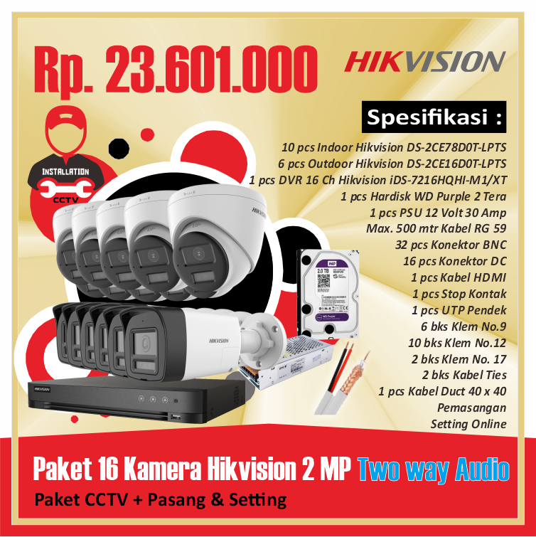 Paket 16 Kamera Hikvision 2 MP Two way AudioRp 23.601.000