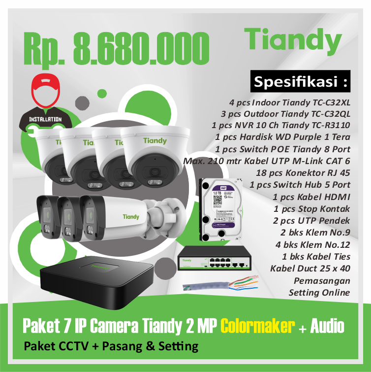 Paket 11 IP Camera Tiandy 2 MP Colormaker + AudioRp 14.191.000
