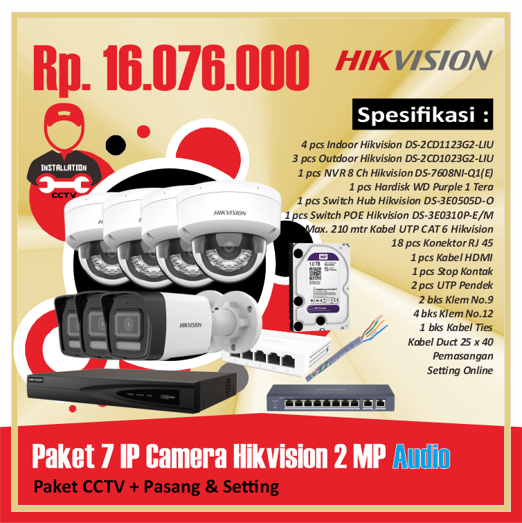 Paket 07 IP Camera Hikvision 2 MP AudioRp 16.076.000
