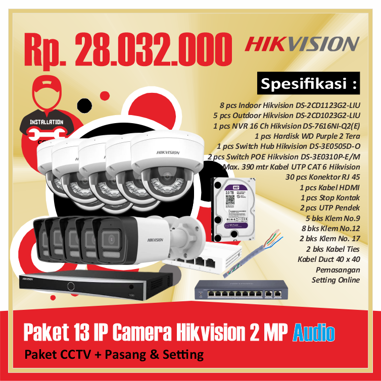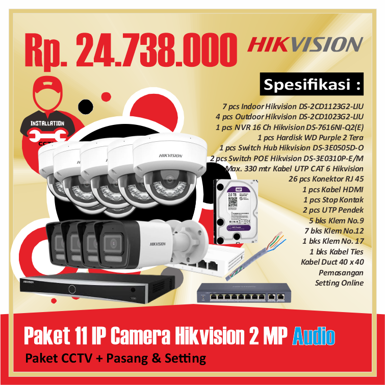 Paket 12 IP Camera Hikvision 2 MP AudioRp 26.429.000