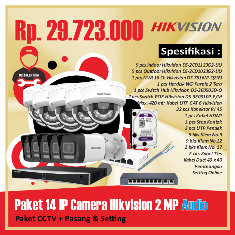 Paket 14 IP Camera Hikvision 2 MP AudioRp 29.723.000