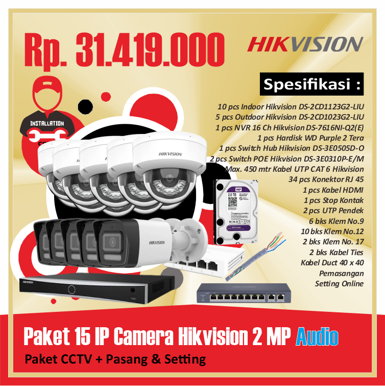 Paket 15 IP Camera Hikvision 2 MP AudioRp 31.419.000