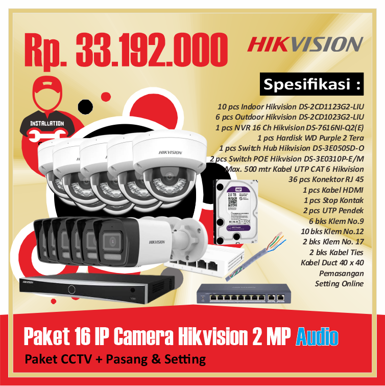 Paket 16 IP Camera Hikvision 2 MP AudioRp 33.192.000