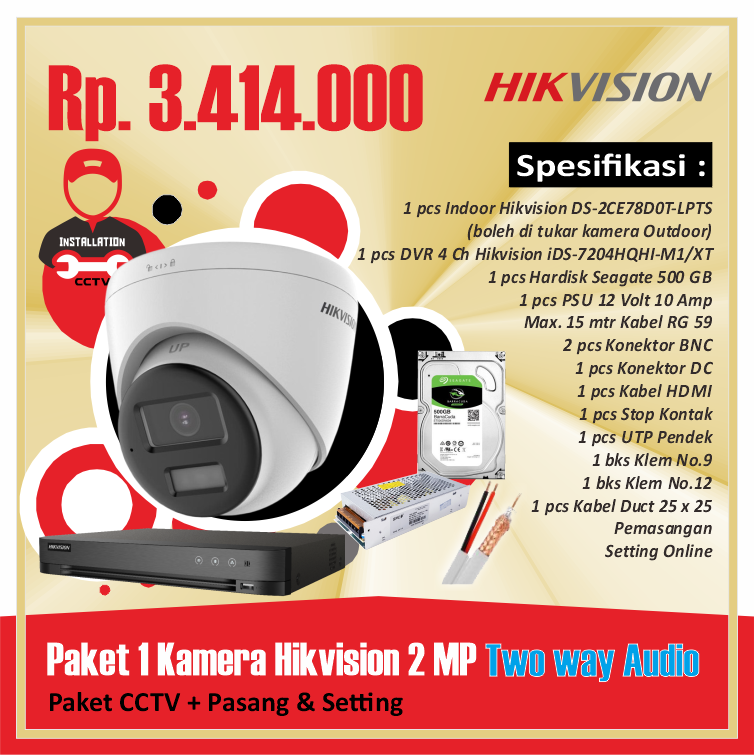 Paket 02 Kamera Hikvision 2 MP Two way AudioRp 4.360.000