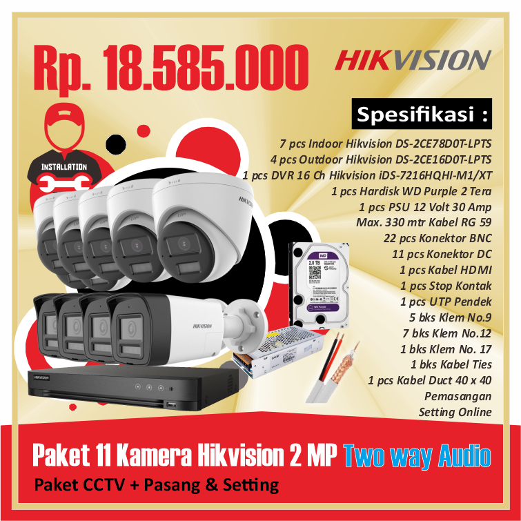 Paket 11 Kamera Hikvision 2 MP Two way AudioRp 18.585.000
